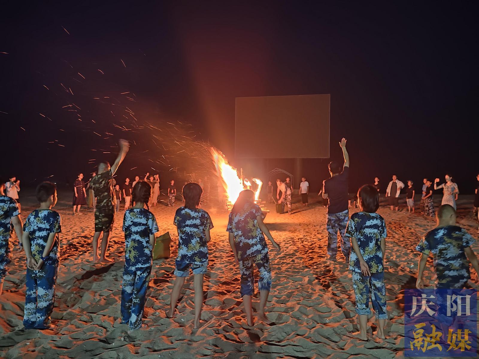落日時(shí)分,太陽變得火紅,發(fā)出刺眼的光芒,將海面染成金色,緩緩落下后,迎來了黑夜的篝火晚會(huì)。我們踩在沙灘上,手拉手,圍繞在篝火旁,載歌載舞,自由歡唱,當(dāng)燦爛的煙花在天空綻放時(shí),美好的一天落下了帷幕。