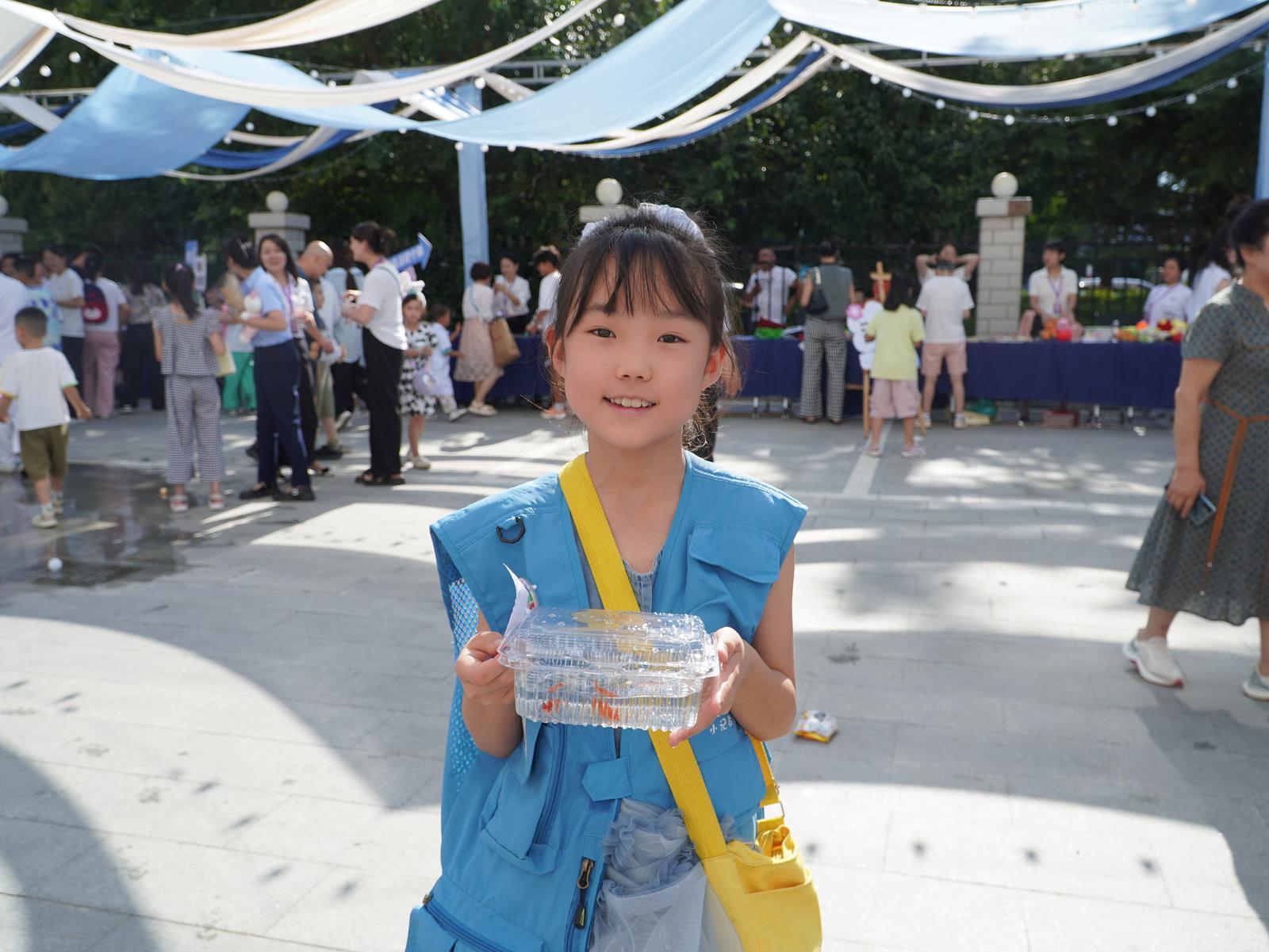 我們每個人都有一張?zhí)灼眳⑴c活動,集齊5個印章就可以兌換一個專門由慶陽市人民醫(yī)院署名的布袋或者一個醫(yī)生打扮的小熊。我參加了很多活動,套圈、跳繩、釣魚都很有趣,集市上還有很多圖書、鮮花、美食攤位,各種商品琳瑯滿目,我也為媽媽和奶奶買了兩束鮮花。
