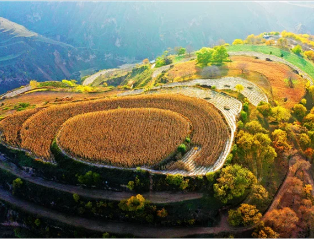 陽光透過稀疏的云層,灑在清凌凌的河水里,如同碎了一河金子,波光閃閃爍爍;灑在山下茂盛的莊稼上,每一道光線都像是大自然的恩賜,那金黃與翠綠交織成的生動(dòng)畫卷,猶如畫家的調(diào)色板;糜谷低垂,沉甸甸的掛滿了果實(shí),微風(fēng)吹來,它們?cè)陲L(fēng)中輕輕搖曳,像是大地母親溫柔地?fù)崦挥衩捉斩掗_始發(fā)黃,沉沉的玉米棒不堪重負(fù),像倒掛金鐘般垂掉下去,和同著葉子在風(fēng)中合奏豐收的交響曲。