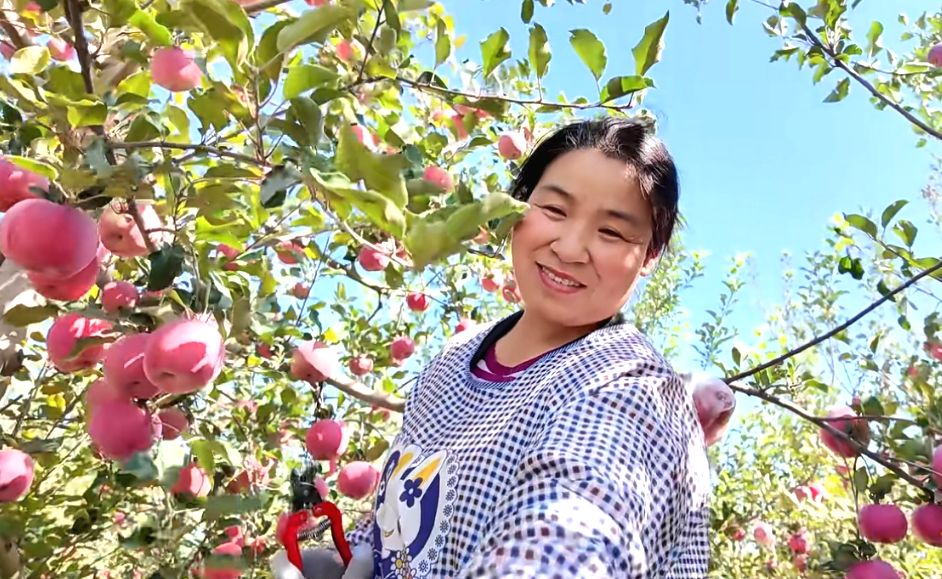 春花,夏雨,秋霜,幾場(chǎng)恰到好處的雨,塬上的蘋果也迎來(lái)了豐收。國(guó)慶節(jié)前大家熱熱鬧鬧取掉套袋,鋪上反光膜給蘋果自然上色,初秋太陽(yáng)光撒射在果園的每一個(gè)角落,在反光膜的助力下,蘋果均勻地染上了一層紅暈,好似待嫁的姑娘。屯字塬上發(fā)展蘋果產(chǎn)業(yè)已經(jīng)有20余年,時(shí)至今日,既有像甘旭合作社一樣規(guī)模比較大的蘋果園,散戶種植也頗具規(guī)模,蘋果產(chǎn)業(yè)已蔚然成風(fēng),由于溫差大,生態(tài)環(huán)境好,品種優(yōu)良,屯字塬上的蘋果甘甜爽口很受歡迎。這里隨便一棵樹(shù)上的每一顆蘋果都像是大自然精心雕琢的藝術(shù)品,外形圓潤(rùn)飽滿,色澤鮮艷誘人。輕咬一口,爽脆的口感在唇齒間綻放,清甜的汁水四溢,瞬間喚醒味蕾。那濃郁的果香,把你帶到了陽(yáng)光明媚的果園,感受到田野里微風(fēng)的輕拂。