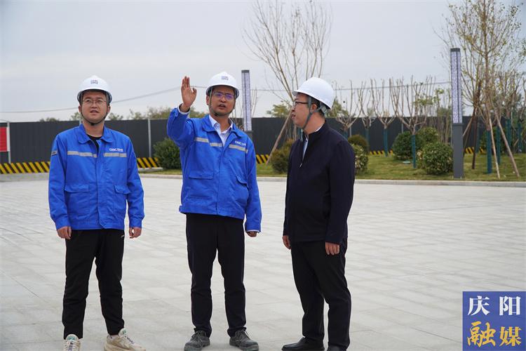 慶陽(yáng)市住建局工作人員(右一)與中國(guó)能建施工方討論項(xiàng)目進(jìn)展。