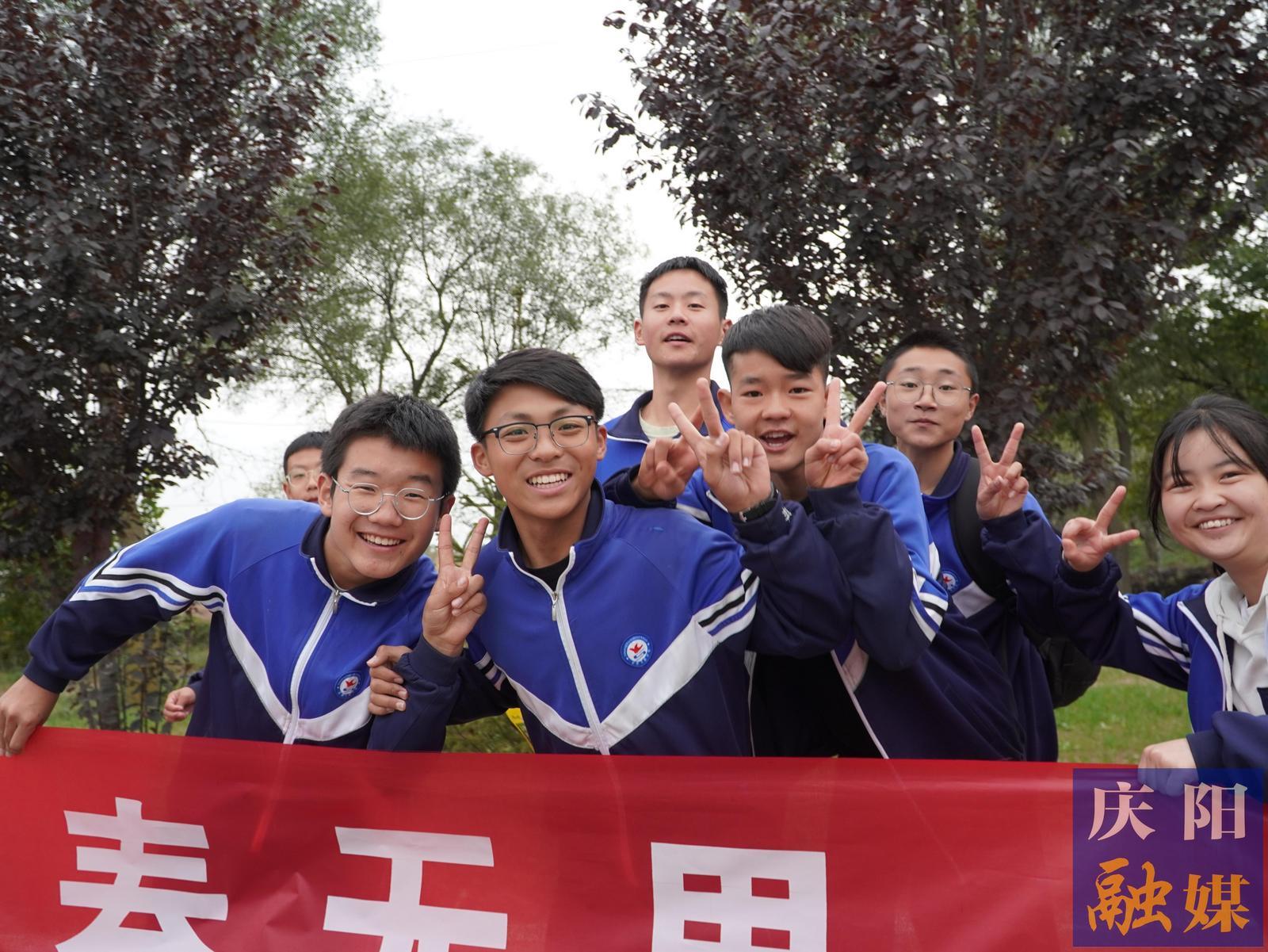 一路上,師生們或集體歌唱,或吟誦詩詞,步履堅定,歡歌笑語,飄揚的隊旗彰顯著少年的凌云壯志,額頭的汗水閃爍著少年的堅定意志,一路的陽光映射著少年的青春力量。
