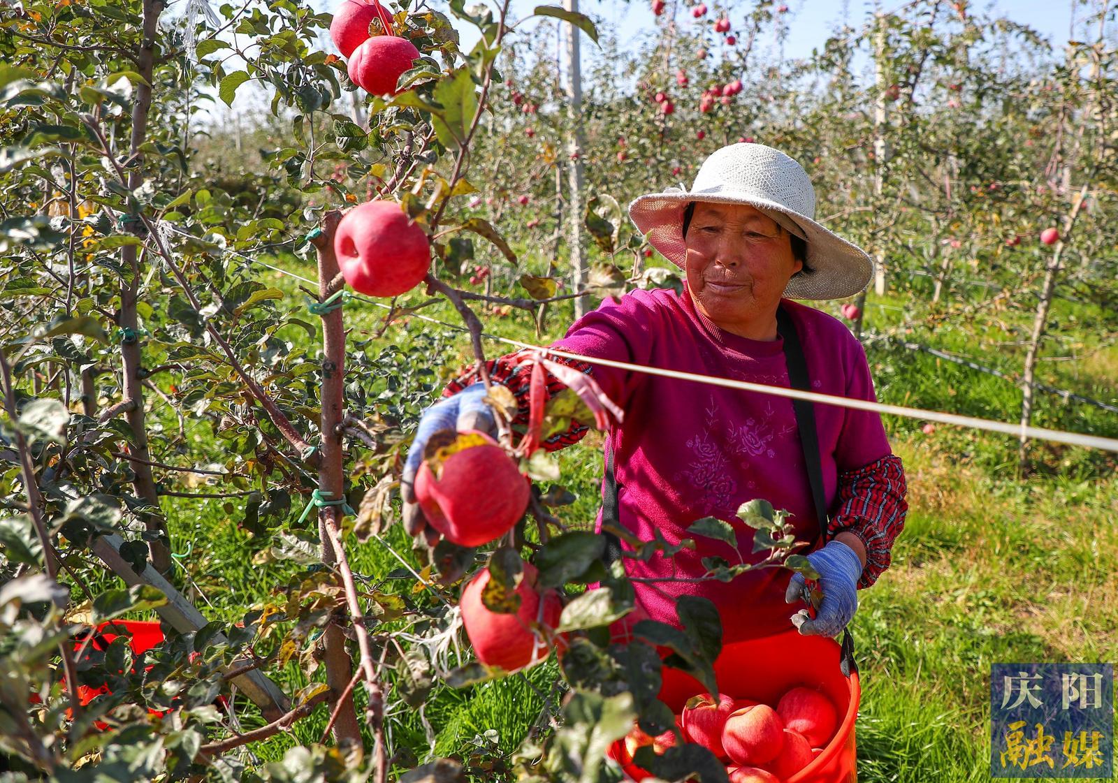 2023年10月17日,慶城縣玄馬鎮(zhèn)村民正在采摘蘋果。