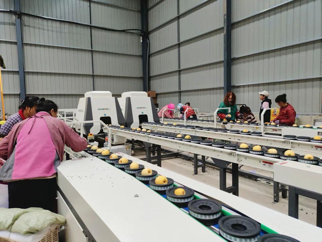 太平鎮(zhèn)居立農(nóng)業(yè)苗木公司負(fù)責(zé)人韋天發(fā)說:“我們從江西引進(jìn)了智能分揀線,每天全負(fù)荷運(yùn)行的話可以分揀包裝蘋果50多噸。先由人工將蘋果放到托盤上,然后經(jīng)過光電機(jī),給每一個(gè)蘋果打上標(biāo)識(shí),一共是12條線,24個(gè)出口,這24個(gè)出口在每一個(gè)出口設(shè)置一個(gè)不同口徑蘋果的標(biāo)準(zhǔn),自動(dòng)就把蘋果分揀出來了,也可以通過對(duì)蘋果透視把蘋果內(nèi)在的問題分辨出來,這樣對(duì)客戶比較負(fù)責(zé)。”