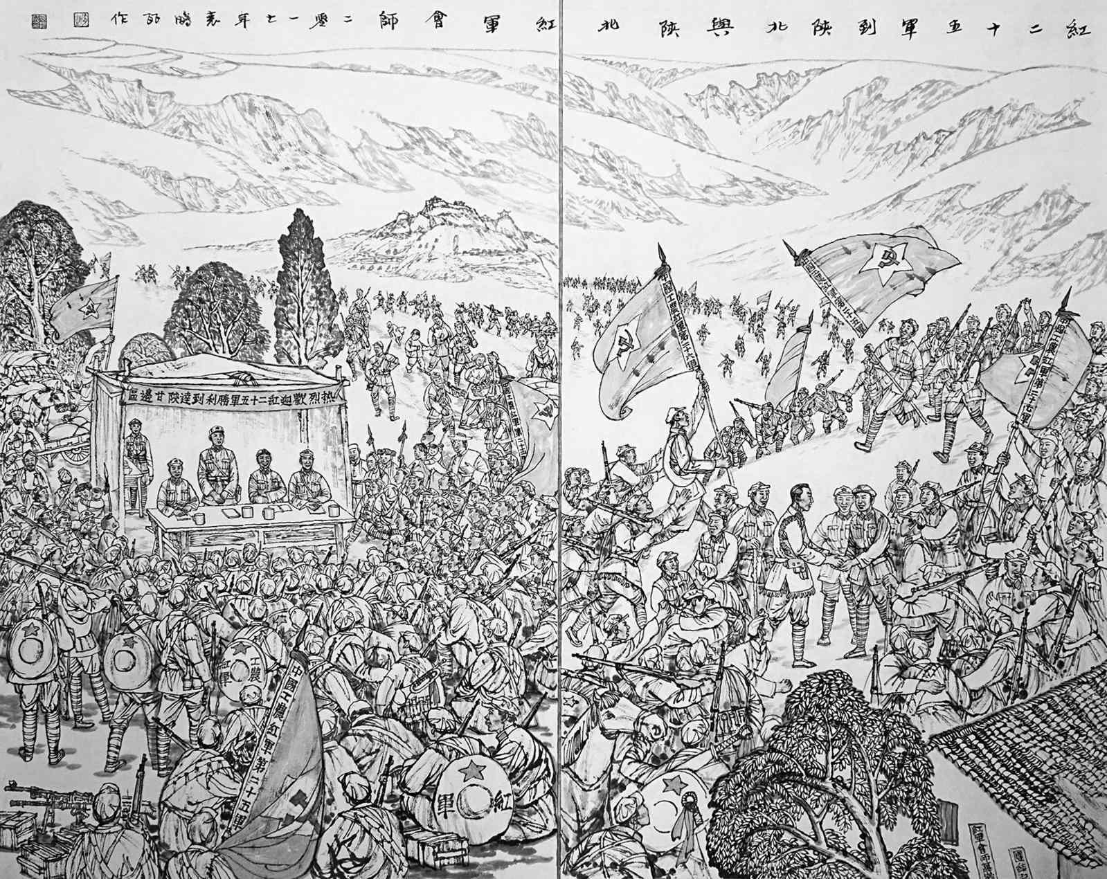 板橋戰(zhàn)斗后,紅二十五軍分兩路沿慶(陽)延(安)公路兩側(cè)的山嶺經(jīng)老城鎮(zhèn)、張舉塬、蒿咀鋪等地向東北挺進(jìn),抵陜甘革命根據(jù)地腹地華池縣東華池鎮(zhèn),進(jìn)入豹子川和南梁一帶。9月7日,中共鄂豫陜省委在豹子川召開擴(kuò)大會(huì)議,決定由徐海東擔(dān)任紅二十五軍軍長,程子華任政治委員并代理省委書記。9月8日,紅二十五軍離開豹子川向陜北挺進(jìn)。陜甘邊區(qū)蘇維埃政府發(fā)動(dòng)根據(jù)地軍民積極支援紅二十五軍。陜甘邊區(qū)蘇維埃政府主席習(xí)仲勛和陜甘邊區(qū)蘇維埃軍事委員會(huì)主席劉景范親自前往永寧山迎接紅二十五軍。在下寺灣一帶休整的紅二十六軍第三團(tuán)也派團(tuán)長黃羅斌到劉家堡迎接紅二十五軍先頭部隊(duì)。