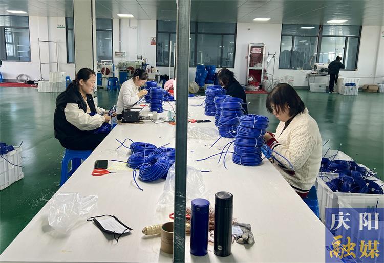 10月23日上午,和盛工業(yè)園區(qū)內(nèi)的甘肅泛聯(lián)電子有限公司生產(chǎn)正酣,工人們?cè)跈C(jī)器旁專注生產(chǎn),接頭加工、鉚壓、檢測,一盤盤電纜產(chǎn)品經(jīng)打包后運(yùn)往各地。