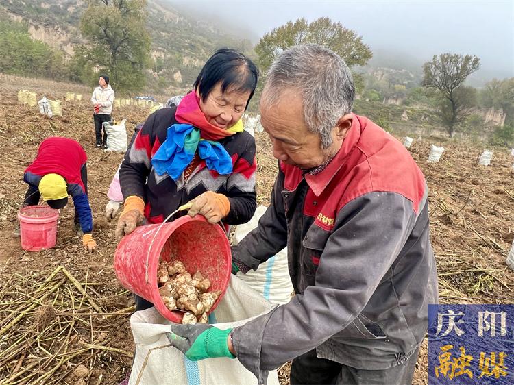 當下,正值洋姜采收季。在慶陽市寧縣春榮鎮(zhèn)昔溝村的洋姜種植示范基地,近千畝洋姜喜獲豐收。上百名村民在姜田里忙碌著清理泥土、裝袋、裝車,一袋袋個頭飽滿、色澤鮮亮的洋姜走出田間,被運往全國各地。