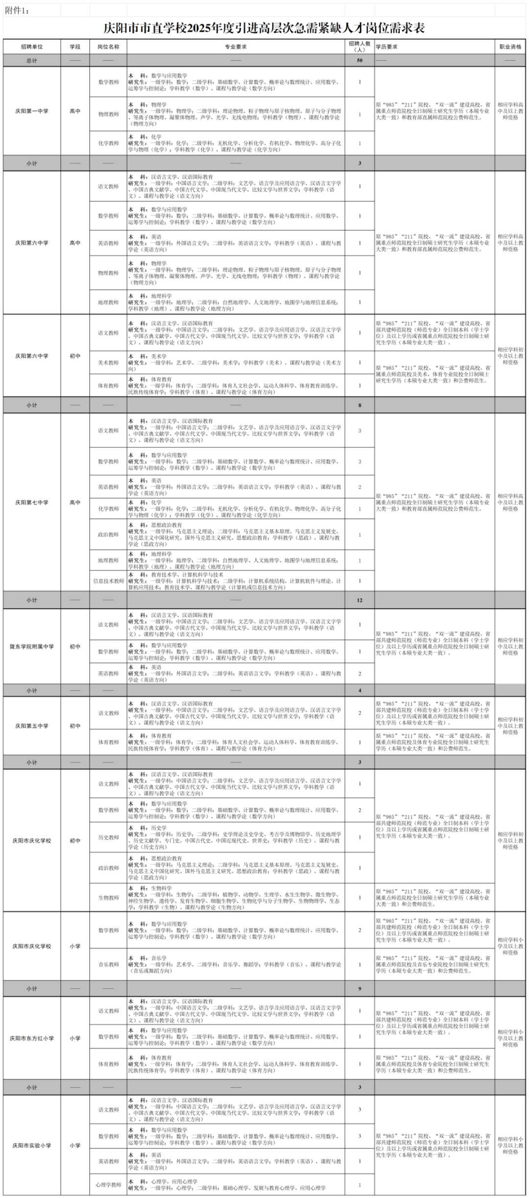 1.慶陽市市直學(xué)校2025年度引進(jìn)高層次急需緊缺人才崗位需求表