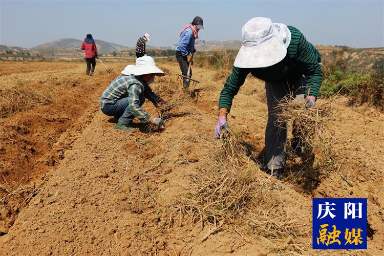 華池縣恒烽中藥材苗林有限公司組織藥農(nóng)采挖黃芪。