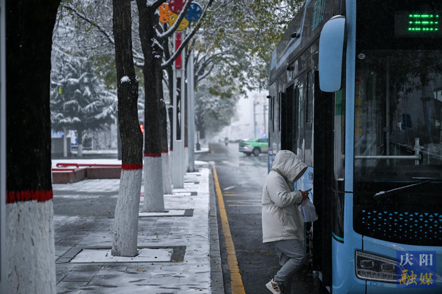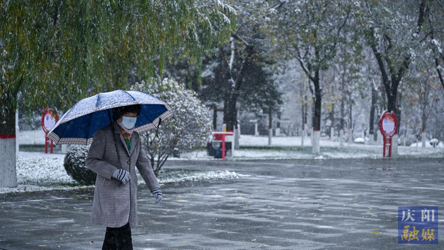 慶陽(yáng)網(wǎng)訊(慶陽(yáng)融媒記者 俄少飛 陳飛)受冷空氣影響,11月18日,慶陽(yáng)迎來(lái)立冬后首場(chǎng)降雪,西峰城區(qū)雪花飛舞,市民冒雪前行。