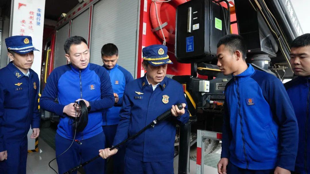 陳軍寬深入戰(zhàn)斗班、廚房、榮譽(yù)室等庫(kù)室,邊檢查、邊詢(xún)問(wèn)、邊規(guī)范,進(jìn)一步提升基層工作秩序和落實(shí)質(zhì)量。在器材裝備室和車(chē)庫(kù),陳軍寬與指戰(zhàn)員研裝驗(yàn)裝,面對(duì)面指導(dǎo)、手把手幫帶,引導(dǎo)指戰(zhàn)員深入推進(jìn)新裝備與作戰(zhàn)應(yīng)用緊密結(jié)合,攻克滅火救援技術(shù)難題。