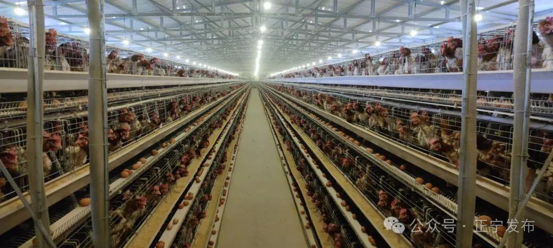 永和鎮(zhèn)盛世昌達(dá)蛋雞養(yǎng)殖場(chǎng)的蛋雞品種為外地調(diào)運(yùn)的“海蘭褐”,它產(chǎn)蛋率高,品質(zhì)優(yōu)良,與傳統(tǒng)養(yǎng)雞場(chǎng)不同的是,這里的雞籠均采用分層垂直排列設(shè)計(jì),一只只蛋雞仿佛住在“迷你”高樓中,整齊而壯觀。同時(shí),采用自動(dòng)化養(yǎng)殖設(shè)備,飼料投放、喂水、除糞、收蛋等流程均實(shí)現(xiàn)了自動(dòng)化操作,因而養(yǎng)殖場(chǎng)內(nèi)環(huán)境整潔,幾乎聞不到異味。每日產(chǎn)生的雞糞在進(jìn)行及時(shí)的烘干發(fā)酵處理后,銷售給周邊果農(nóng)可做果園有機(jī)肥料。