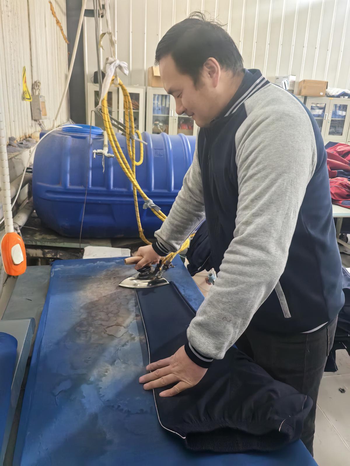 在位于慶城縣驛馬工業(yè)園區(qū)的慶陽蘭布衫有限公司生產(chǎn)車間里,鞏繼東和幾十名殘障人士以及婦女忙著縫制、熨燙、包裝訂單校服,縫紉機的嗒嗒聲此起彼伏。