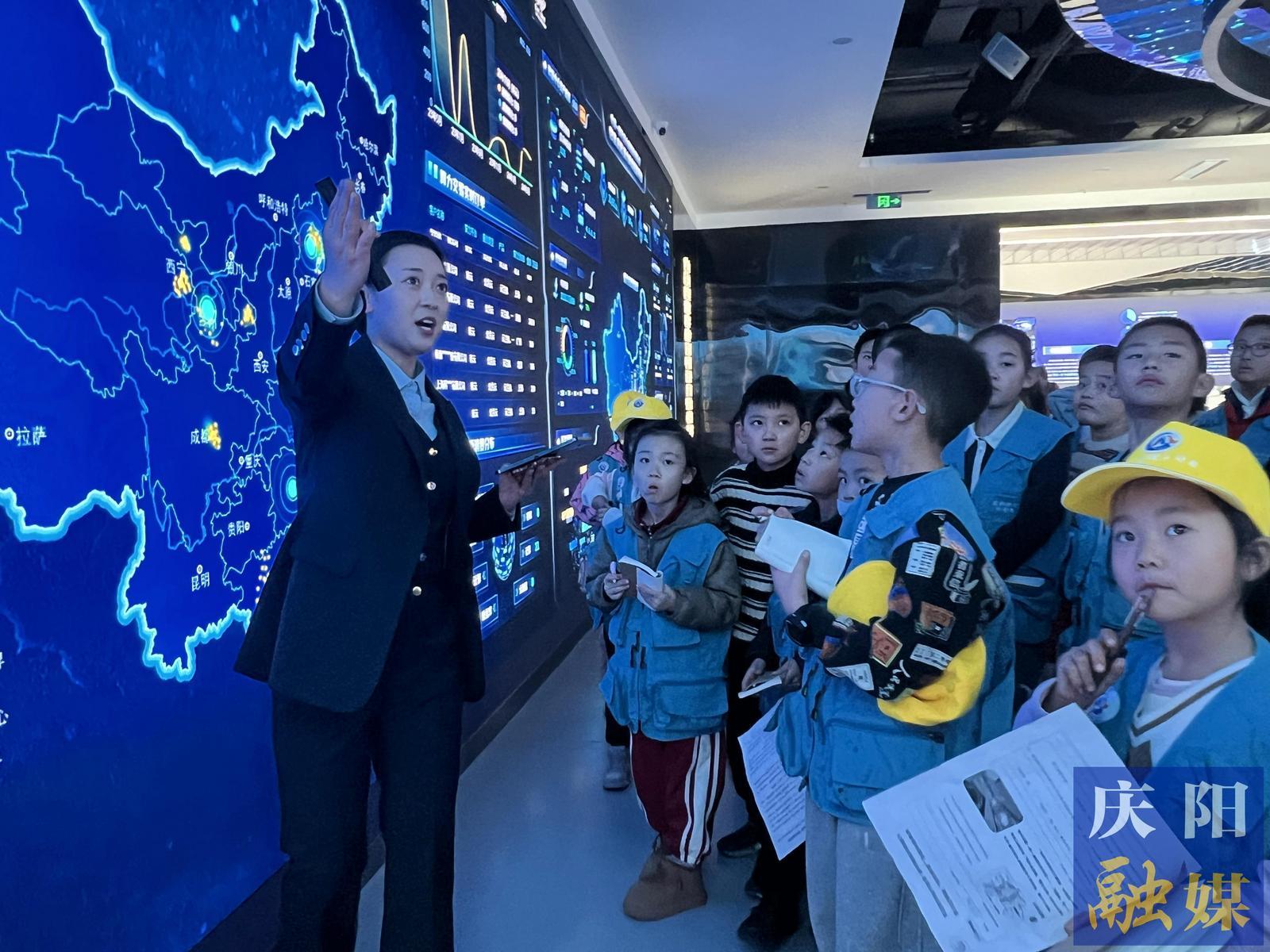 在慶陽(yáng)云創(chuàng)公司講解員李肖肖的帶領(lǐng)下,小記者們踏入了這個(gè)充滿科技感的展示空間。一進(jìn)門,一幅巨大的數(shù)字畫卷映入眼簾,生動(dòng)展現(xiàn)了慶陽(yáng)市近年來(lái)在“東數(shù)西算”工程中的最新成果和亮點(diǎn)。小記者們紛紛駐足,用好奇的目光審視著這片數(shù)字世界的“新大陸”。