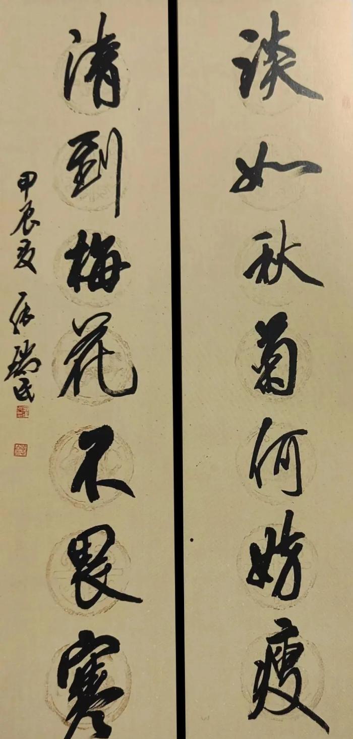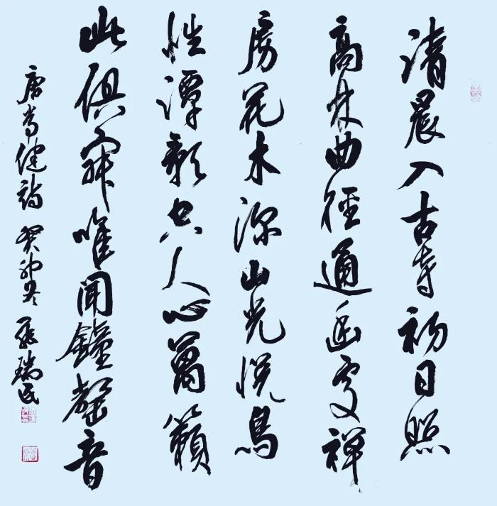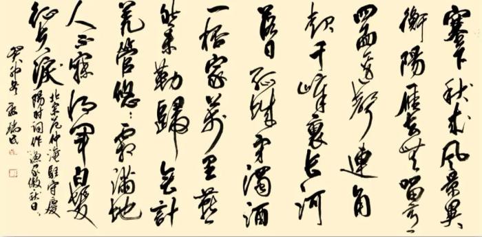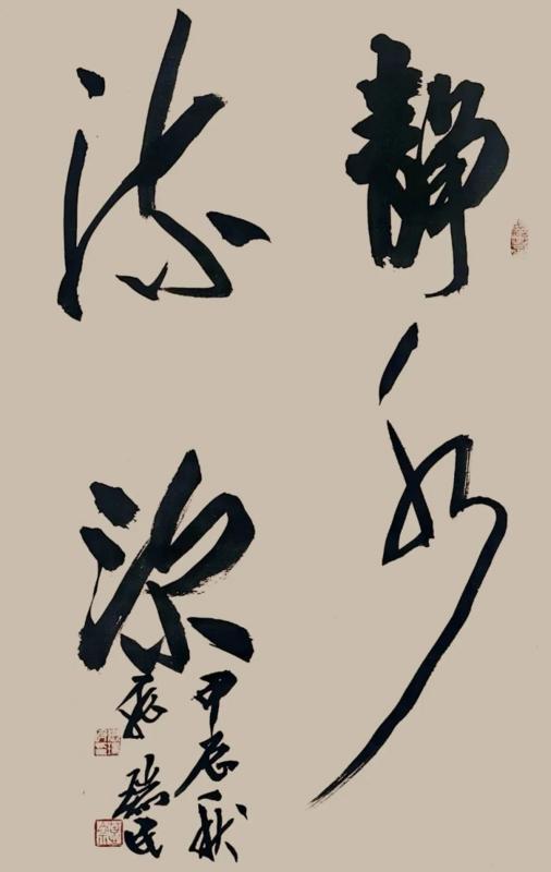 這似乎開(kāi)啓了他對(duì)筆法的深度思考!看得出在他近期的書藝中,多了一些衂措和甩筆,尤其關(guān)注轉(zhuǎn)折和提按,腕力傳導(dǎo),更顯硬度和趣味,線條在運(yùn)行過(guò)程中有意追求對(duì)空間的表現(xiàn)力,速度急緩有度,虬媚相間,筆劃不再隨意,而象心電圖,以表達(dá)心靈的氣象為追求?。ㄉ希?/p>