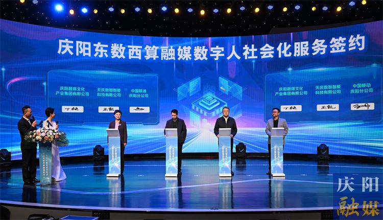 活動(dòng)最后,慶陽融媒文化產(chǎn)業(yè)集團(tuán)有限公司、天慶數(shù)智智能科技有限公司共同與中國聯(lián)通慶陽分公司、中國移動(dòng)慶陽分公司、甘肅正德工程建設(shè)集團(tuán)有限公司、四川國禧酒業(yè)集團(tuán)有限公司簽訂了數(shù)字科技服務(wù)合作協(xié)議;與電商主播代表董偵生、短劇創(chuàng)作主播代表馬浩簽訂數(shù)字人賦能協(xié)議。