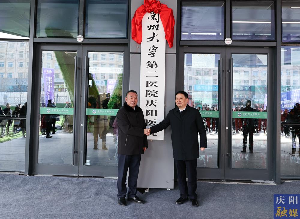 市委副書記、市長(zhǎng)周繼軍與蘭大二院黨委書記楊建文為“蘭州大學(xué)第二醫(yī)院慶陽(yáng)醫(yī)院”揭牌。