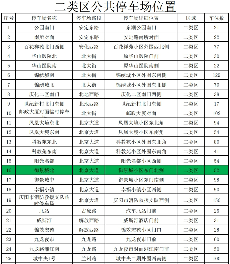 慶陽城順通停車服務有限公司運營管理的131個停車場、6933個停車位(見附件)。