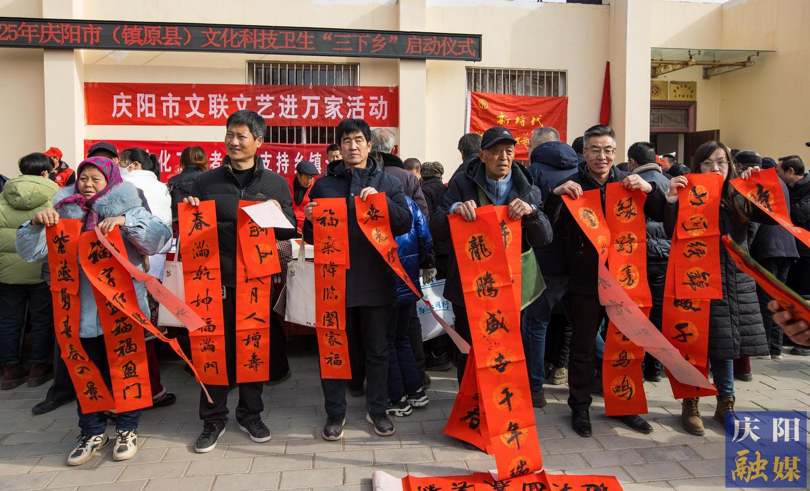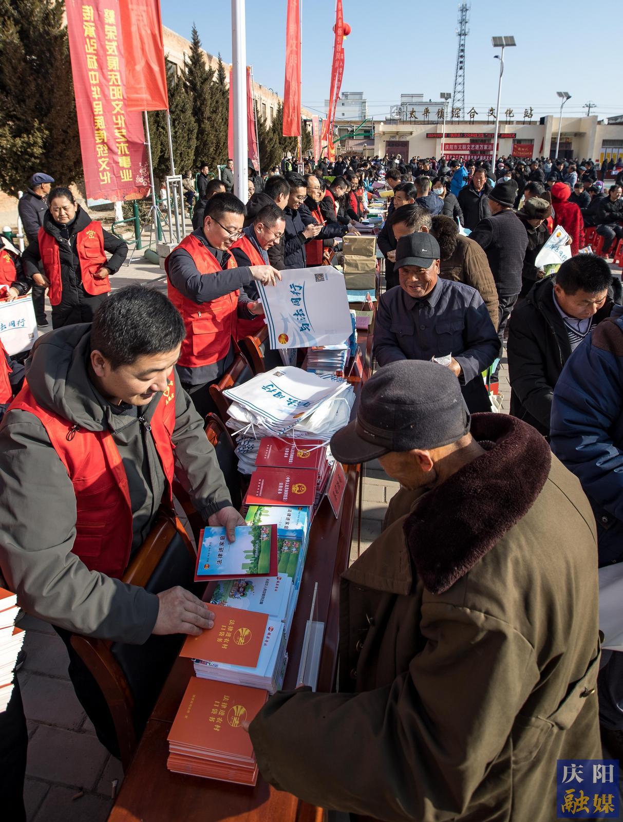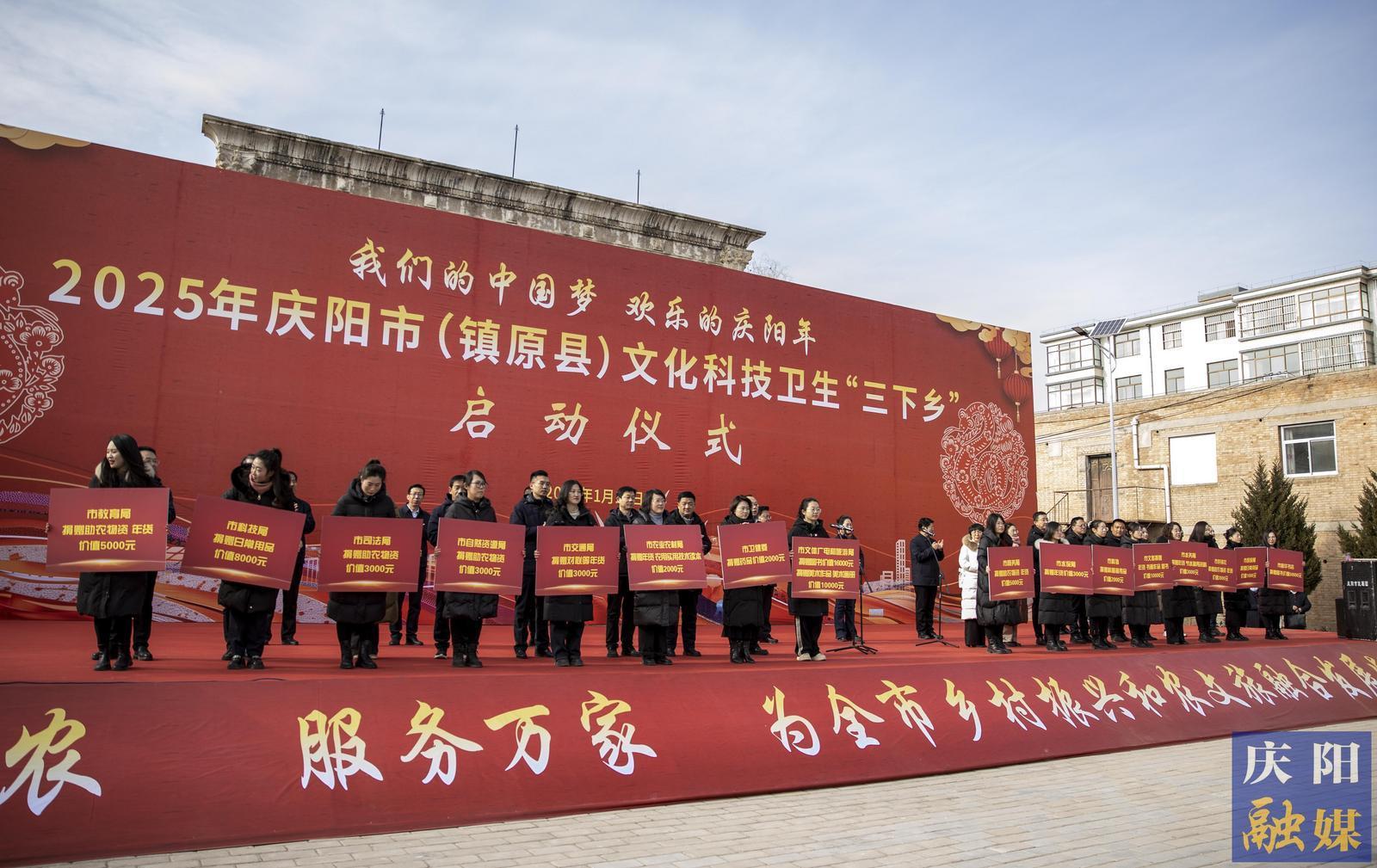 啟動(dòng)儀式上,市、縣有關(guān)部門(mén)、單位、企業(yè)向鎮(zhèn)原縣太平鎮(zhèn)捐贈(zèng)了價(jià)值12萬(wàn)余元的農(nóng)業(yè)物資、書(shū)籍年貨等?,F(xiàn)場(chǎng)開(kāi)展了文藝表演、政策宣講、專家義診等系列活動(dòng)。