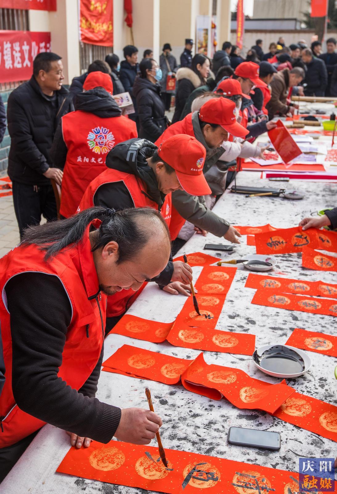 書(shū)畫(huà)家為群眾書(shū)寫(xiě)贈(zèng)送春聯(lián)。
