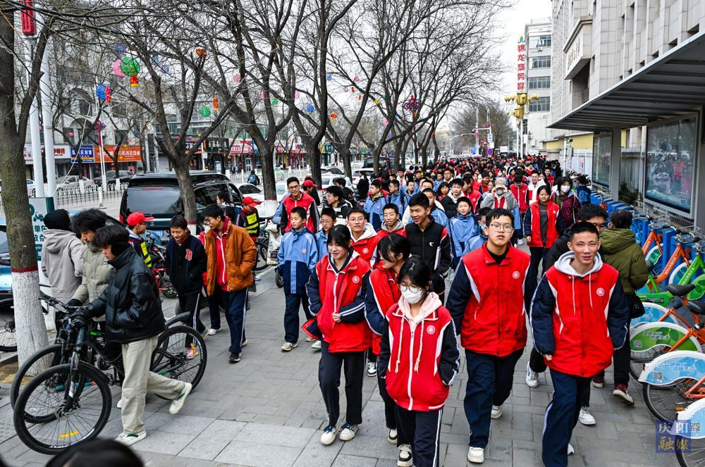 慶陽三中,學(xué)生們放學(xué)后走出校園。