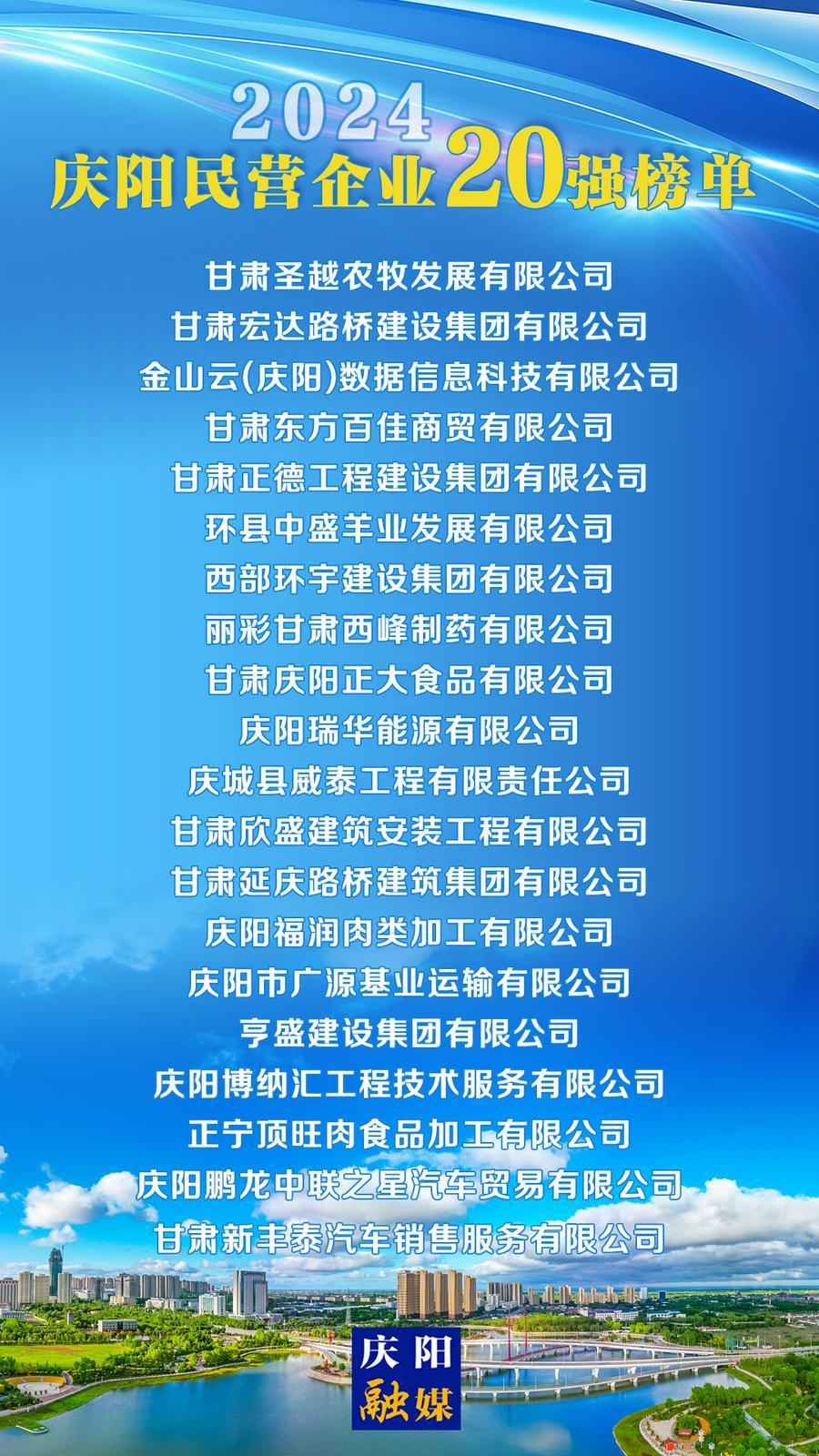 2月25日下午,全市民營經(jīng)濟高質(zhì)量發(fā)展大會召開,會上發(fā)布了“2024慶陽民營企業(yè)20強”榜單。