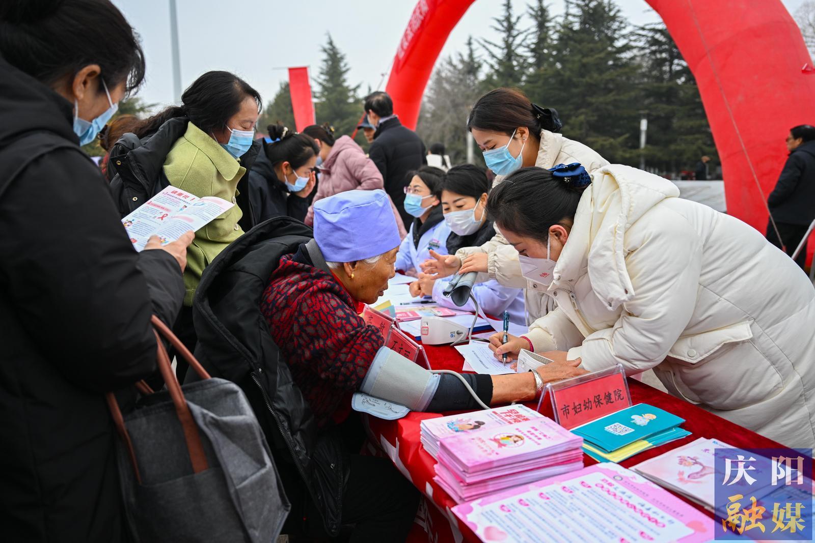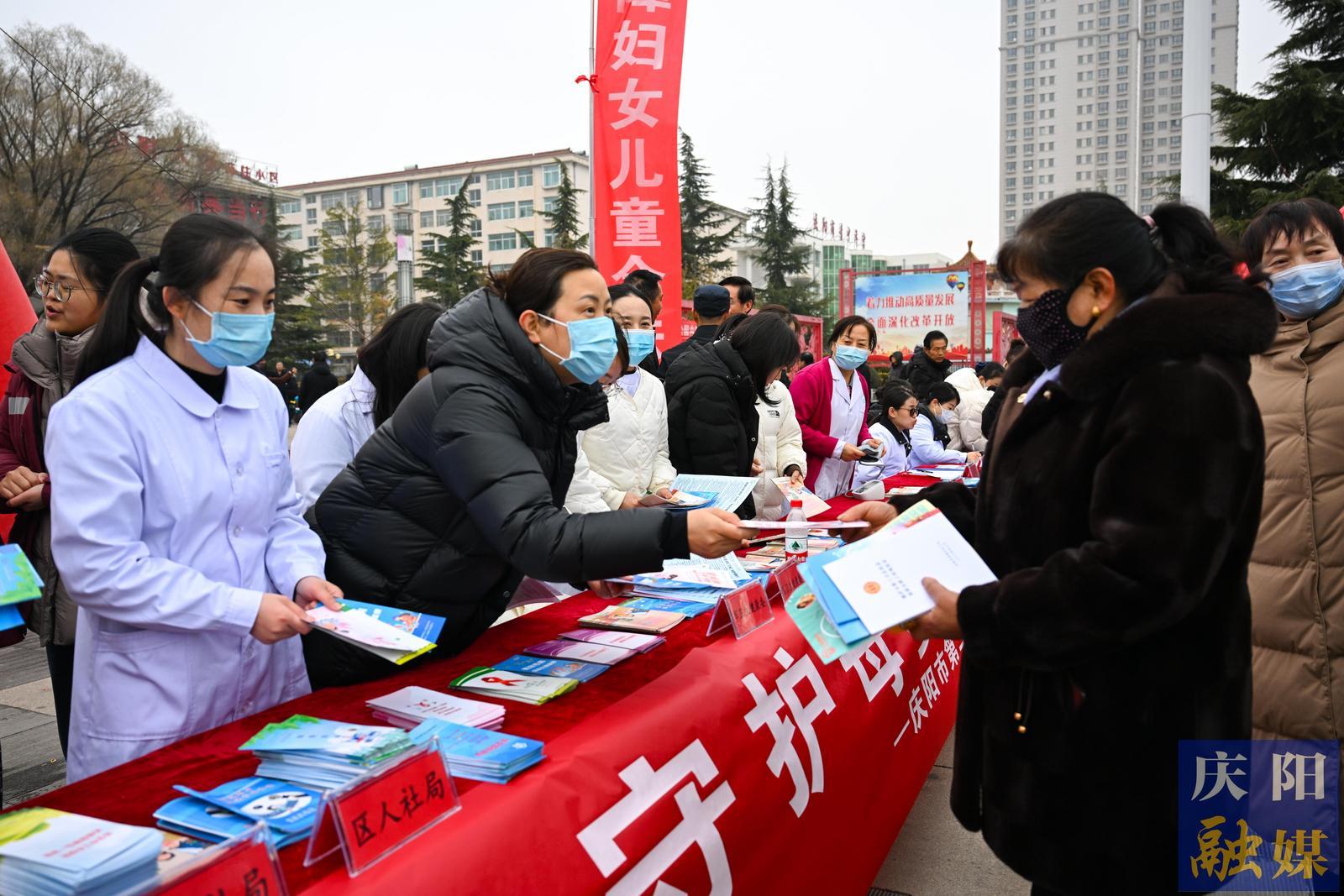 慶陽(yáng)市衛(wèi)健委工作人員向市民宣傳女性保健知識(shí)。