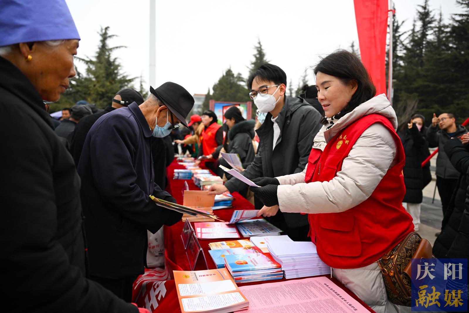 慶陽(yáng)市檢察院工作人員向市民宣傳《民法典》等法律法規(guī)。