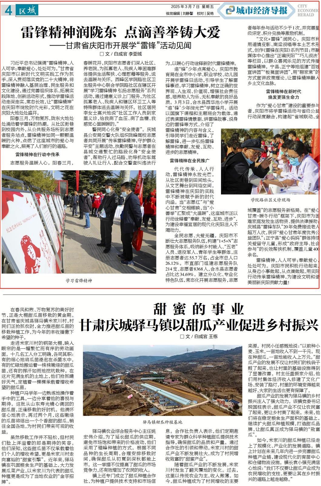 陽春三月,萬物復(fù)蘇,隴東大地處處涌動著學(xué)雷鋒的熱潮。從社區(qū)街巷到校園內(nèi)外,從公共服務(wù)場所到志愿者服務(wù)站點,雷鋒精神如同一顆顆溫暖的火種,點燃了這座城市的愛心與奉獻之火,照亮了人們前行的道路。