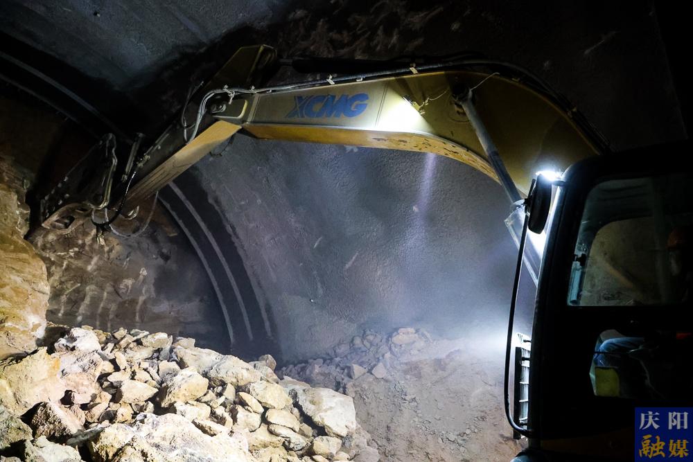 富家坪隧道大型機(jī)械正在挖掘山石。