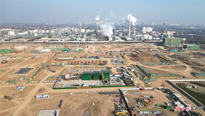 離慶陽瑞海嘉提氦項目不遠處的慶陽同欣50萬噸/年輕烴深加工項目建設(shè)現(xiàn)場,機械轟鳴,車輛穿梭,一派火熱建設(shè)場景。