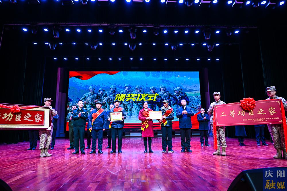 為兩名立功受獎的慶陽籍軍人頒發(fā)二等功獎牌。