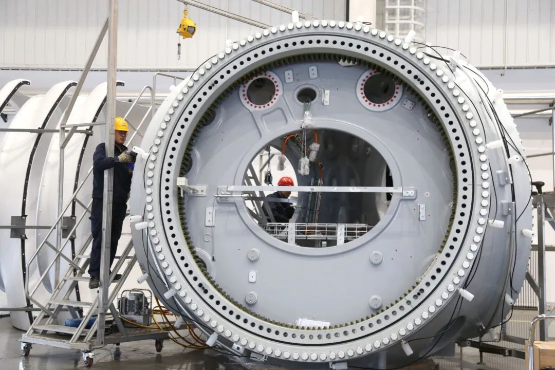 “我們目前生產(chǎn)的這臺組機(jī)為5.6兆瓦機(jī)組,滿發(fā)狀態(tài)下發(fā)電量每小時可達(dá)5600千瓦,機(jī)組主要運(yùn)往華能慶陽新能源示范項(xiàng)目機(jī)組基地實(shí)施吊裝、測試、并網(wǎng)發(fā)電,2025年下半年公司計(jì)劃將單月產(chǎn)能提升20%。”慶陽三一新能源裝備有限公司生產(chǎn)車間主任楊殿明說。