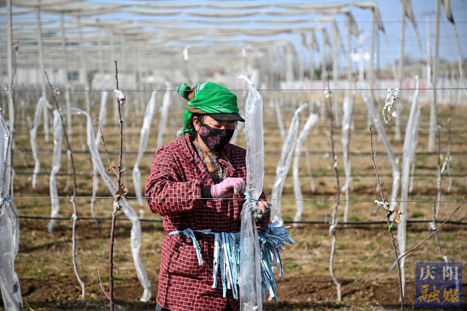 慶陽隴清瓜果農(nóng)民專業(yè)合作社,工人給櫻桃樹剪枝。