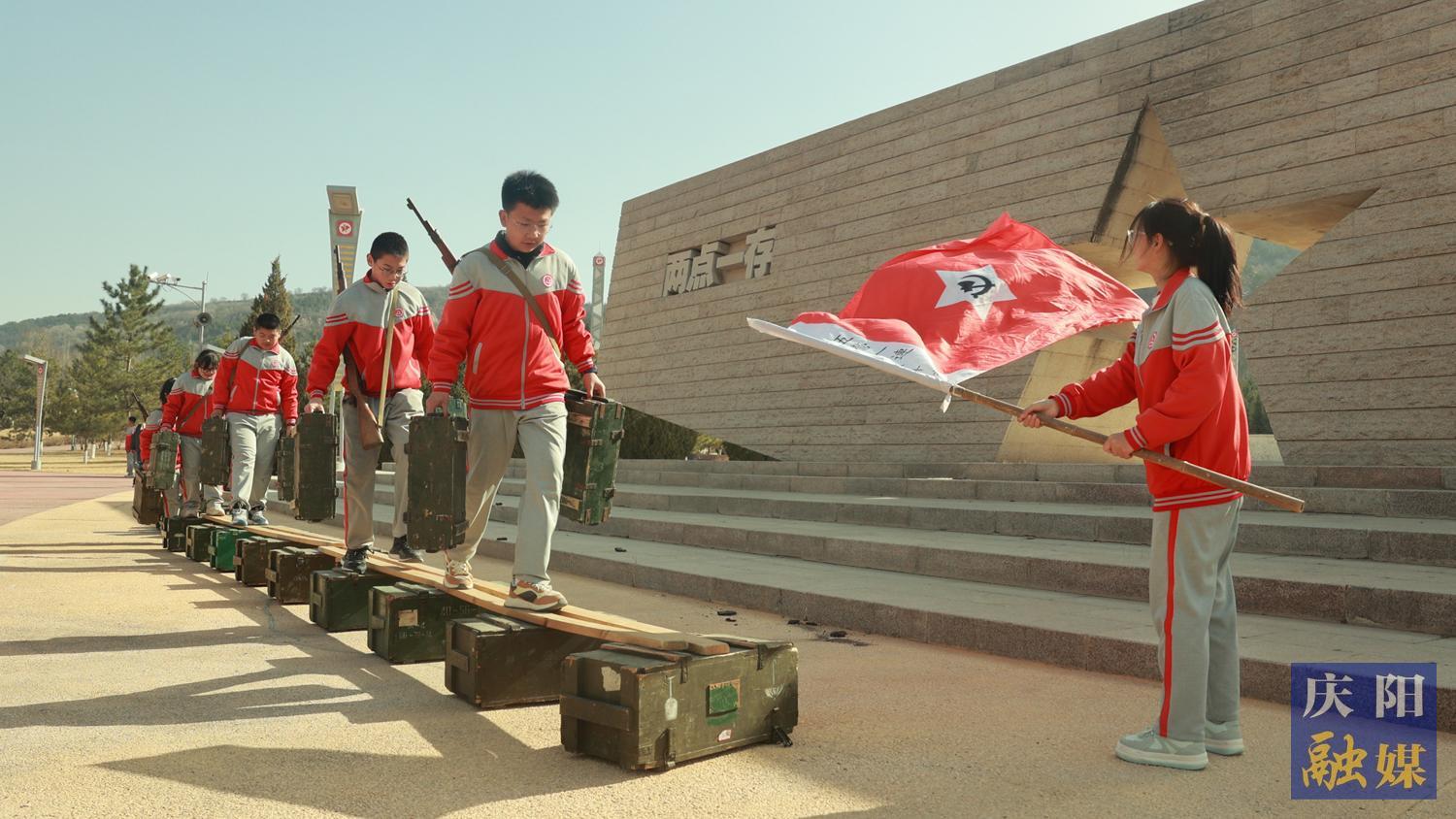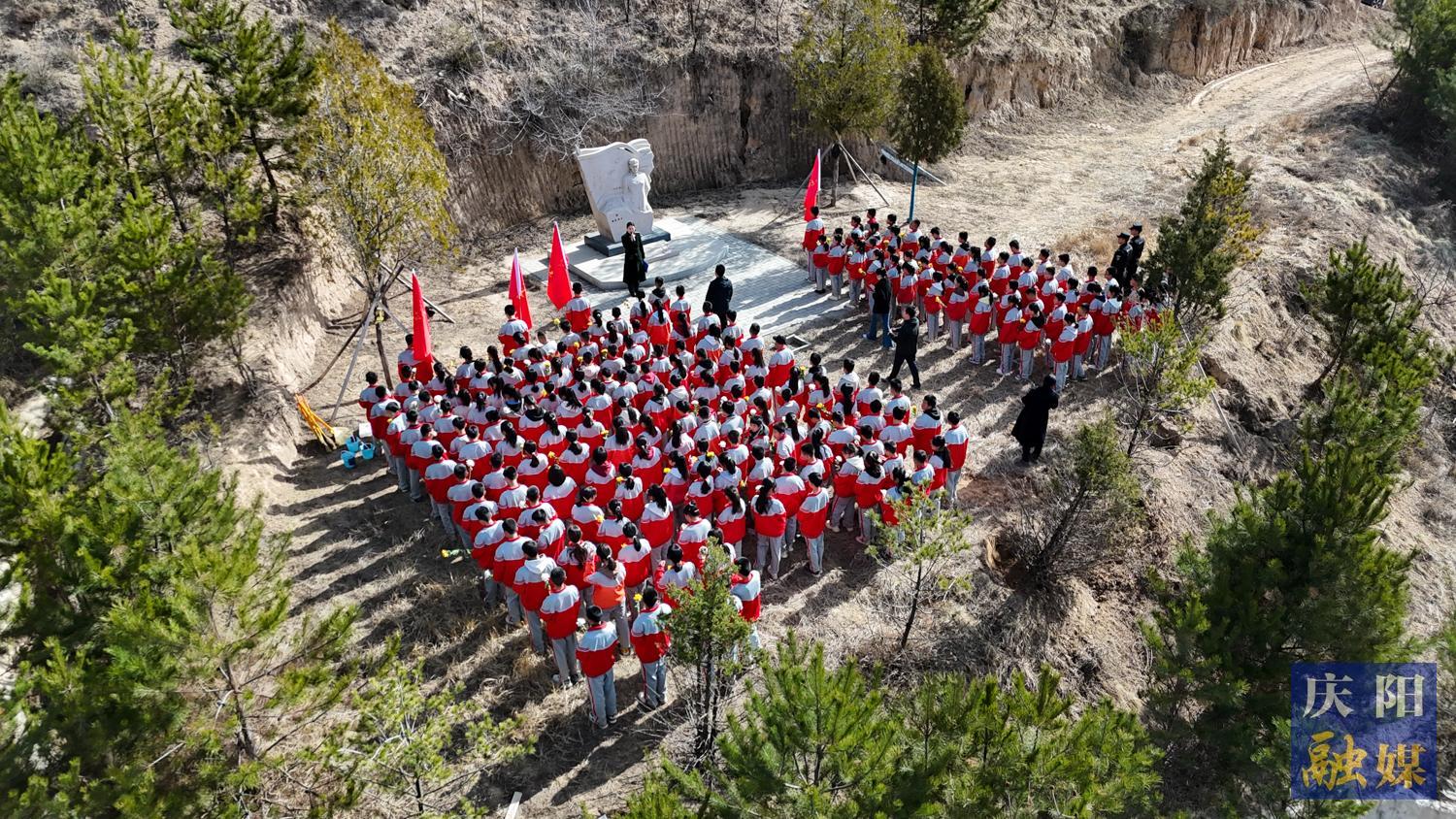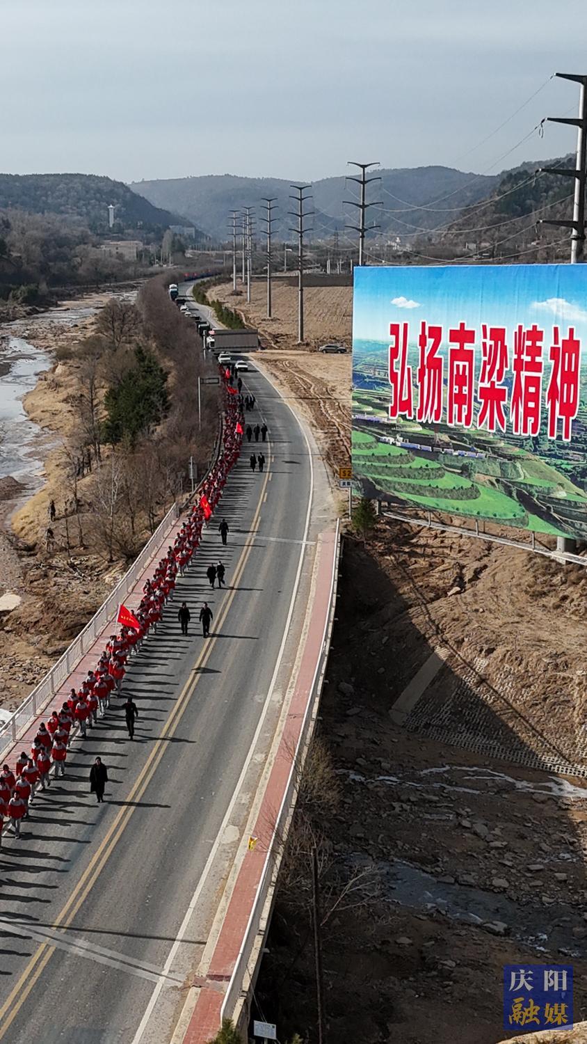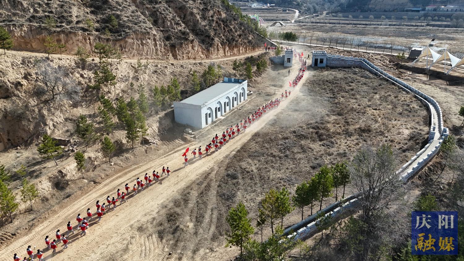 來自華池縣五所中學的800余名師生從華池縣列寧學校出發(fā),途經(jīng)閆洼子四十二烈士墓、劉懋功將軍墓、南梁革命烈士紀念碑、南梁紀念館、“兩點一存”主題廣場,徒步總路程7.2 公里。