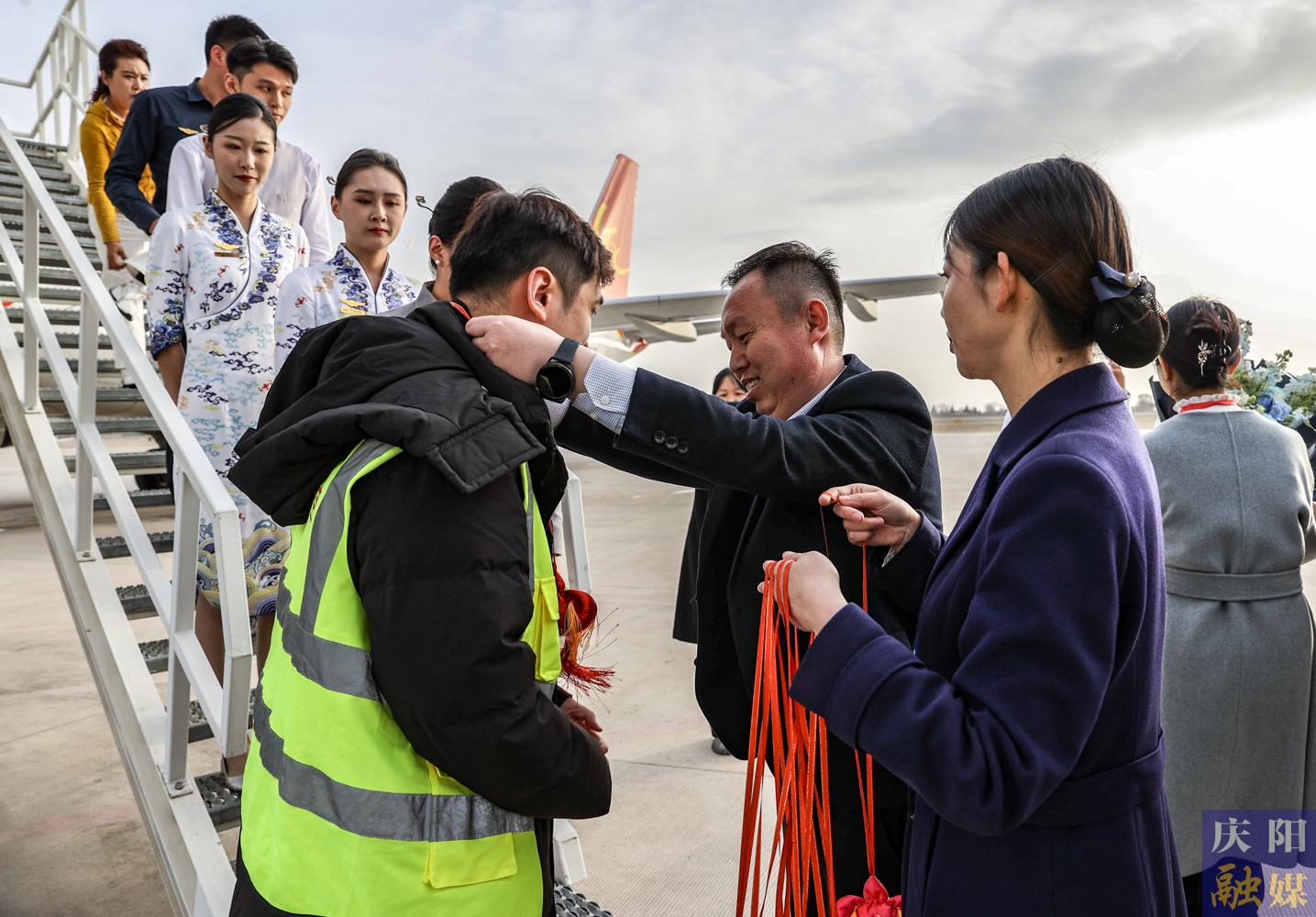 慶陽機場為機組人員送慶陽香包。