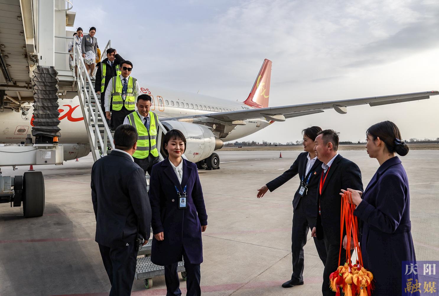 機組人員和慶陽機場工作人員合影。