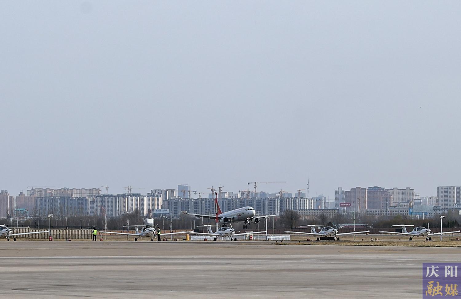 海口=慶陽=蘭州GX8889航班滿載乘客平穩(wěn)降落慶陽機場。