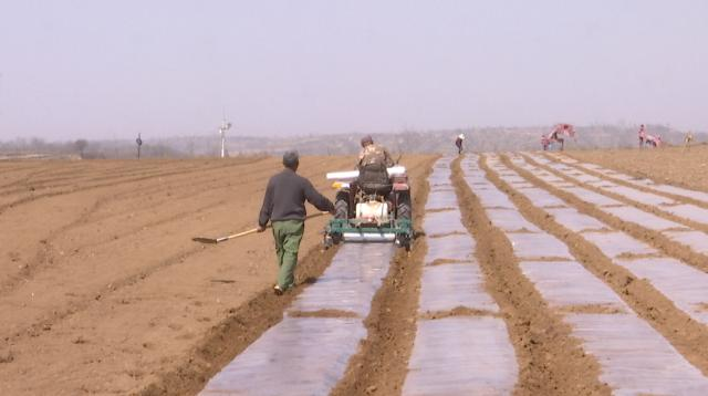 這幾天,太莪鄉(xiāng)北掌村的田地里也是一片熱火朝天的景象,隨處可見群眾忙碌的身影,他們搶抓農(nóng)時(shí)開展覆膜作業(yè),為春種做足準(zhǔn)備。村民高生治一大早就來到自家地中,在覆膜機(jī)鋪好地膜后,迅速用土將地膜的邊緣壓實(shí),以防大風(fēng)將地膜吹起?!敖衲陦勄樘貏e好,我想早點(diǎn)把地膜覆上,種些冬瓜。”高生治說。