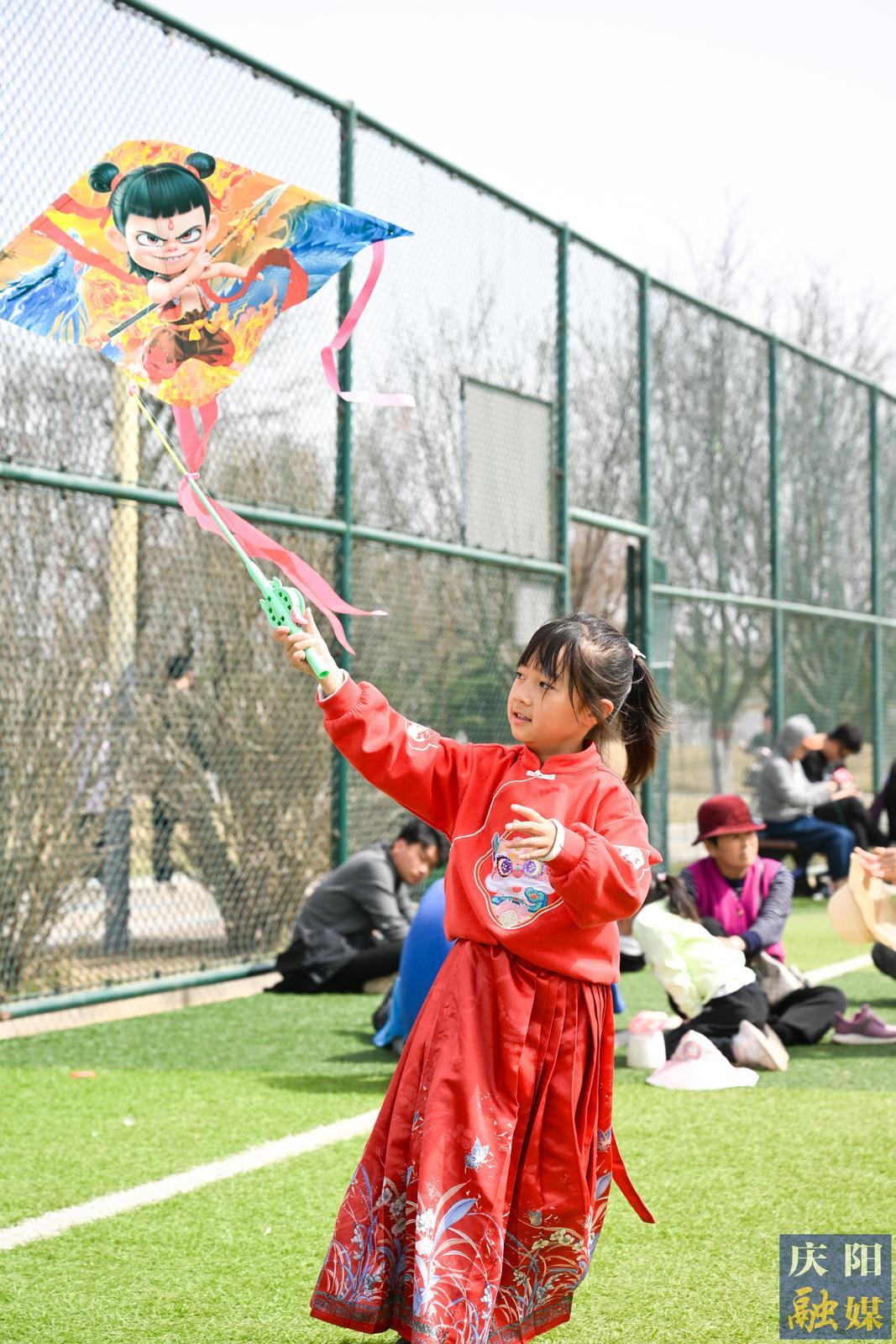 小朋友放飛“哪吒”風(fēng)箏。