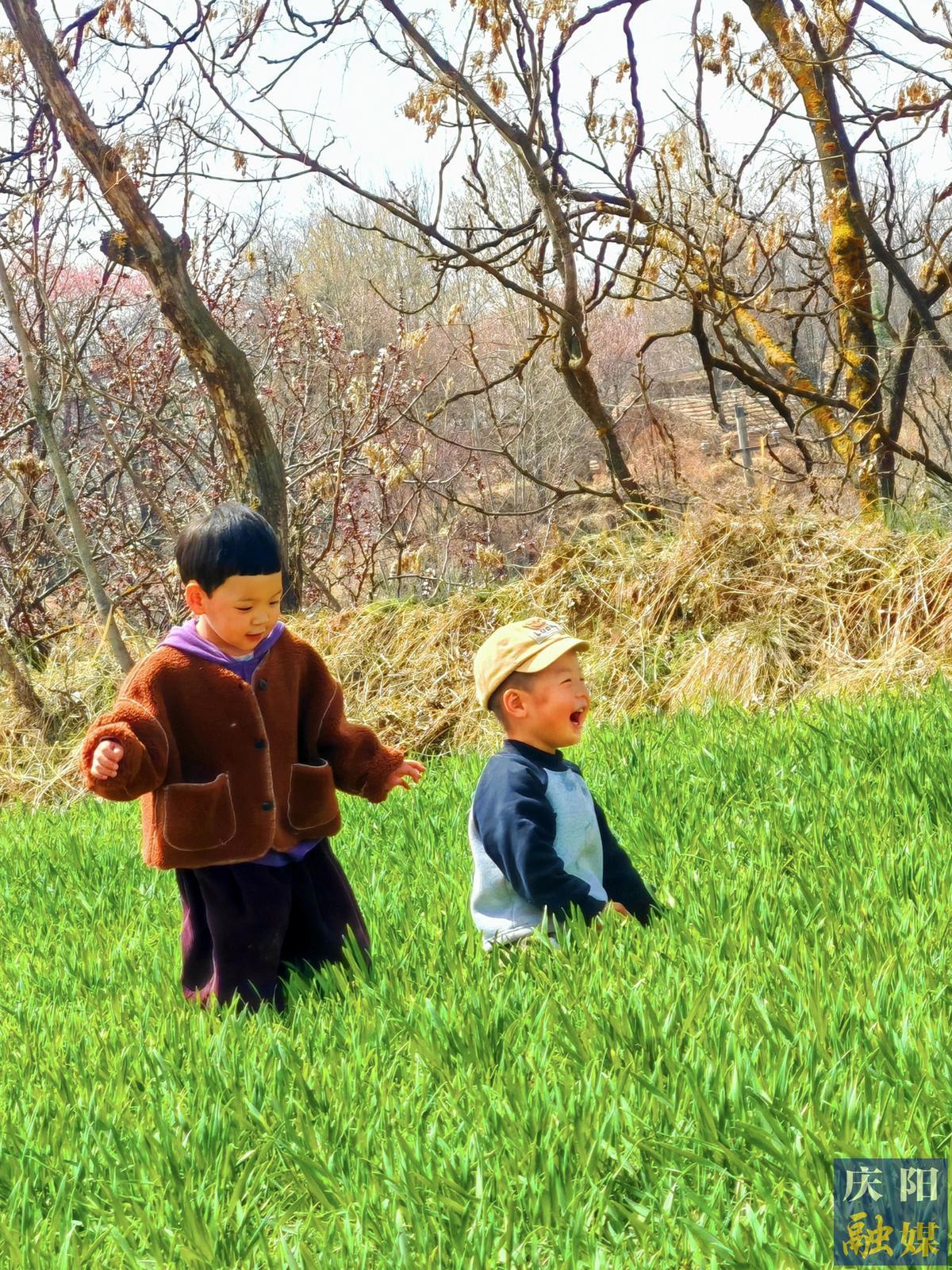 西峰區(qū)肖金鎮(zhèn)李城村的孩子們玩耍嬉戲。