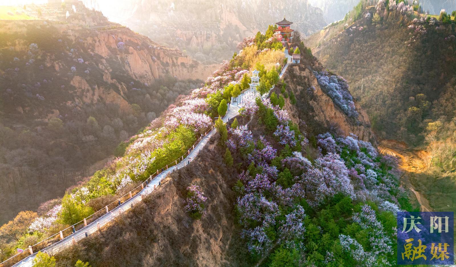 西峰區(qū)小崆峒景區(qū)桃花、杏花初開,正是春游好去處。