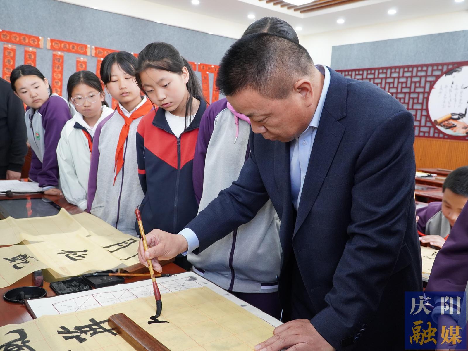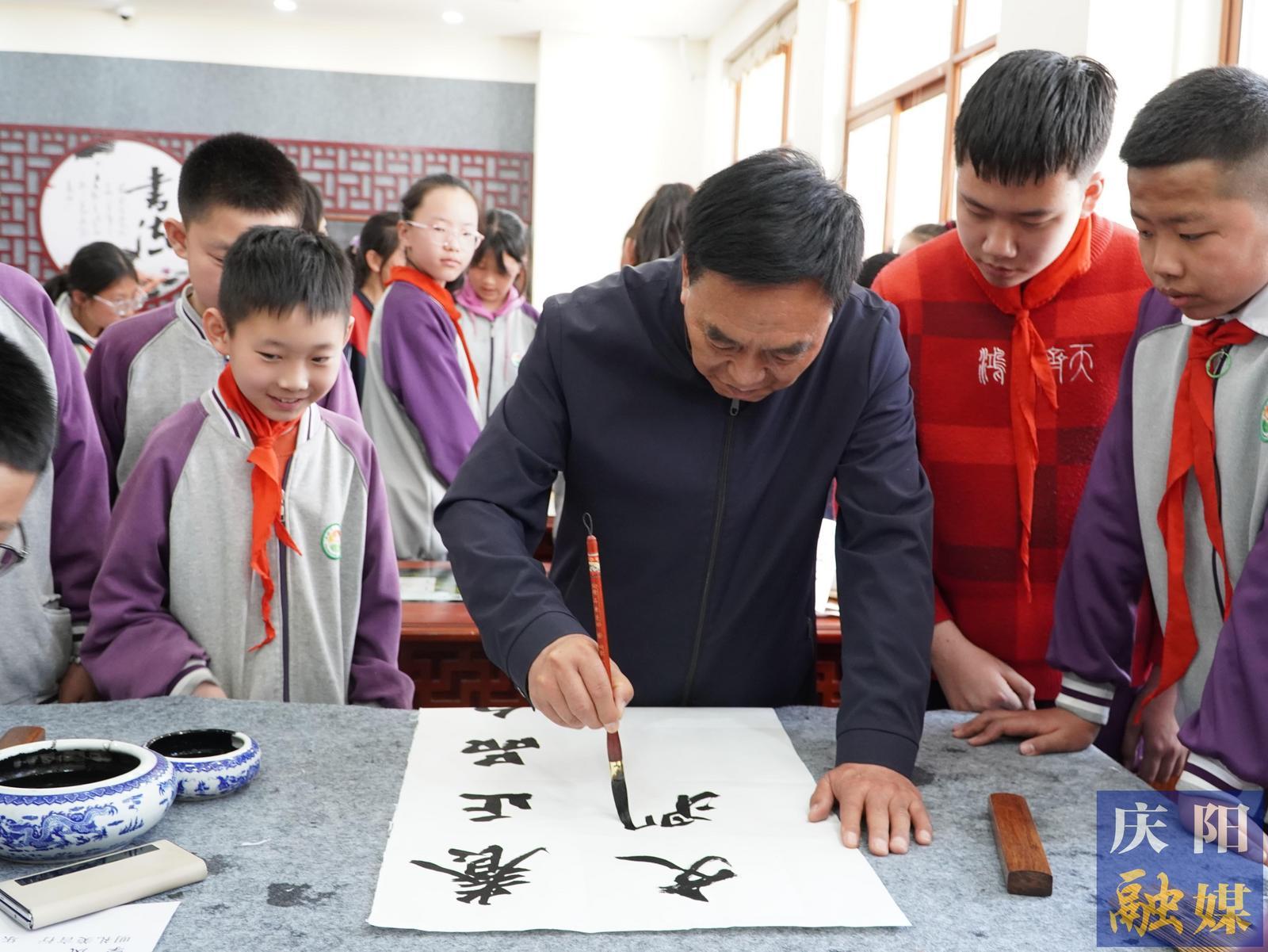此次活動(dòng)不僅實(shí)現(xiàn)了基礎(chǔ)教育與本土文化資源的深度對(duì)接,更構(gòu)建起“名家駐校”育人新范式。慶陽(yáng)市東方紅小學(xué)黨總支書(shū)記張世猛表示,讓藝術(shù)大師與孩子們面對(duì)面,既是傳統(tǒng)文化薪火相傳的紐帶,也是提升學(xué)生綜合素養(yǎng)的創(chuàng)新實(shí)踐。學(xué)校將以書(shū)法臨摹、非遺工坊、文學(xué)采風(fēng)等特色社團(tuán)為載體,系統(tǒng)推進(jìn)傳統(tǒng)文化教育縱深發(fā)展。
