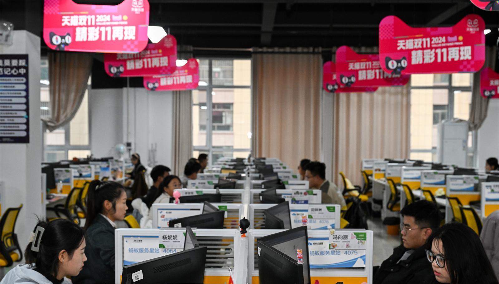 在環(huán)縣數(shù)字就業(yè)基地內(nèi),天貓官方客服在工作。