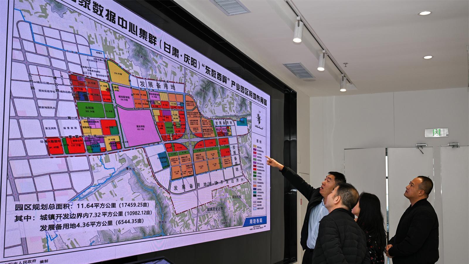 慶陽“東數(shù)西算”產(chǎn)業(yè)園工作人員介紹園區(qū)規(guī)劃。