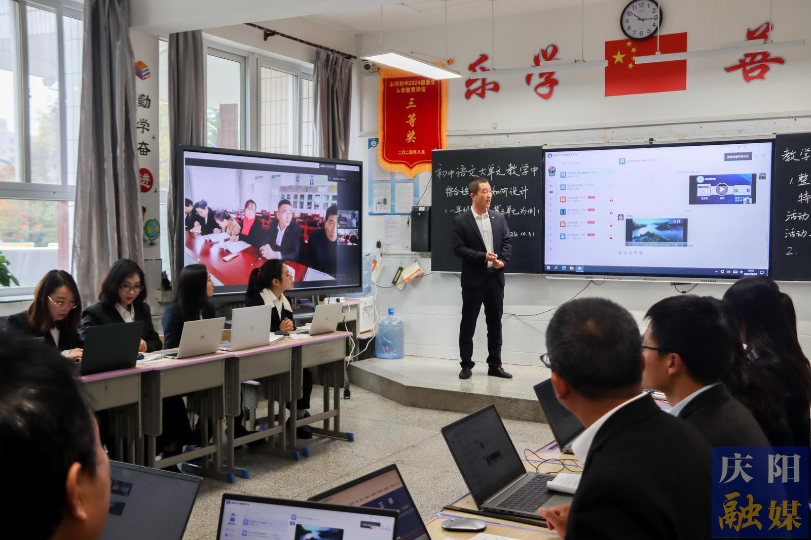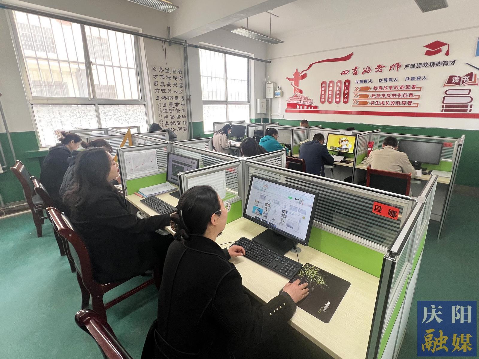 正寧縣山河初中語(yǔ)文學(xué)科教研組的老師們正在開(kāi)展云端教研。慶陽(yáng)融媒記者 俄少飛 攝