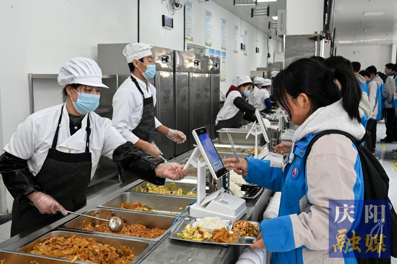 鎮(zhèn)原縣第一中學(xué)學(xué)生正在使用智慧食堂系統(tǒng)打飯。慶陽(yáng)融媒記者 俄少飛 攝
