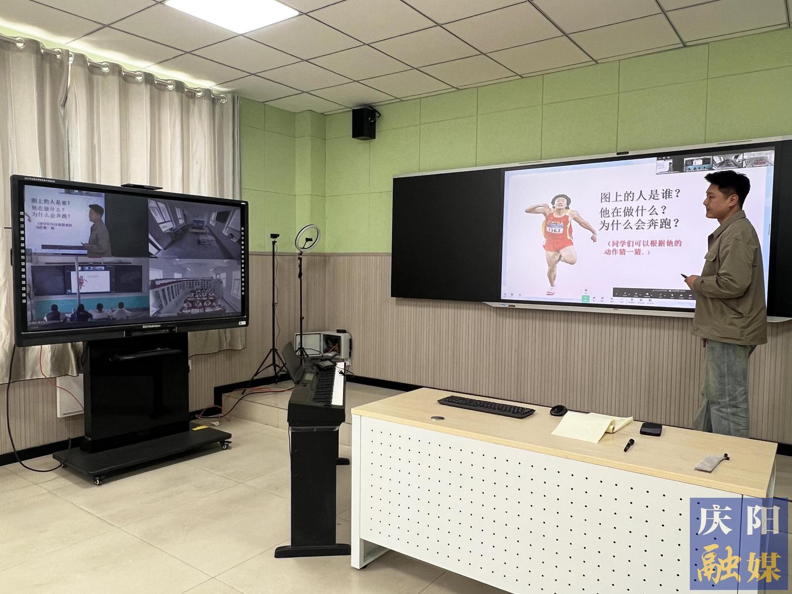 鎮(zhèn)原縣廟渠小學(xué)老師正在通過(guò)專網(wǎng)給鄉(xiāng)村教學(xué)點(diǎn)的學(xué)生上課。慶陽(yáng)融媒記者 王華 攝