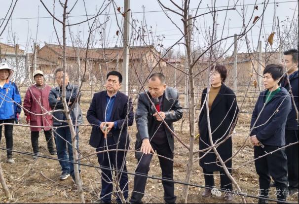 不遠處,黨員技術骨干任楊龍也手持高枝剪,邊操作邊講解:“要疏除競爭枝,保留中庸枝,保證樹體通風透光?!贬槍麍@春季修剪的技術難點,服務隊采用“黨員技術骨干+果農(nóng)”的結對方式,在現(xiàn)場手把手指導,把技術實實在在地送到了田間。