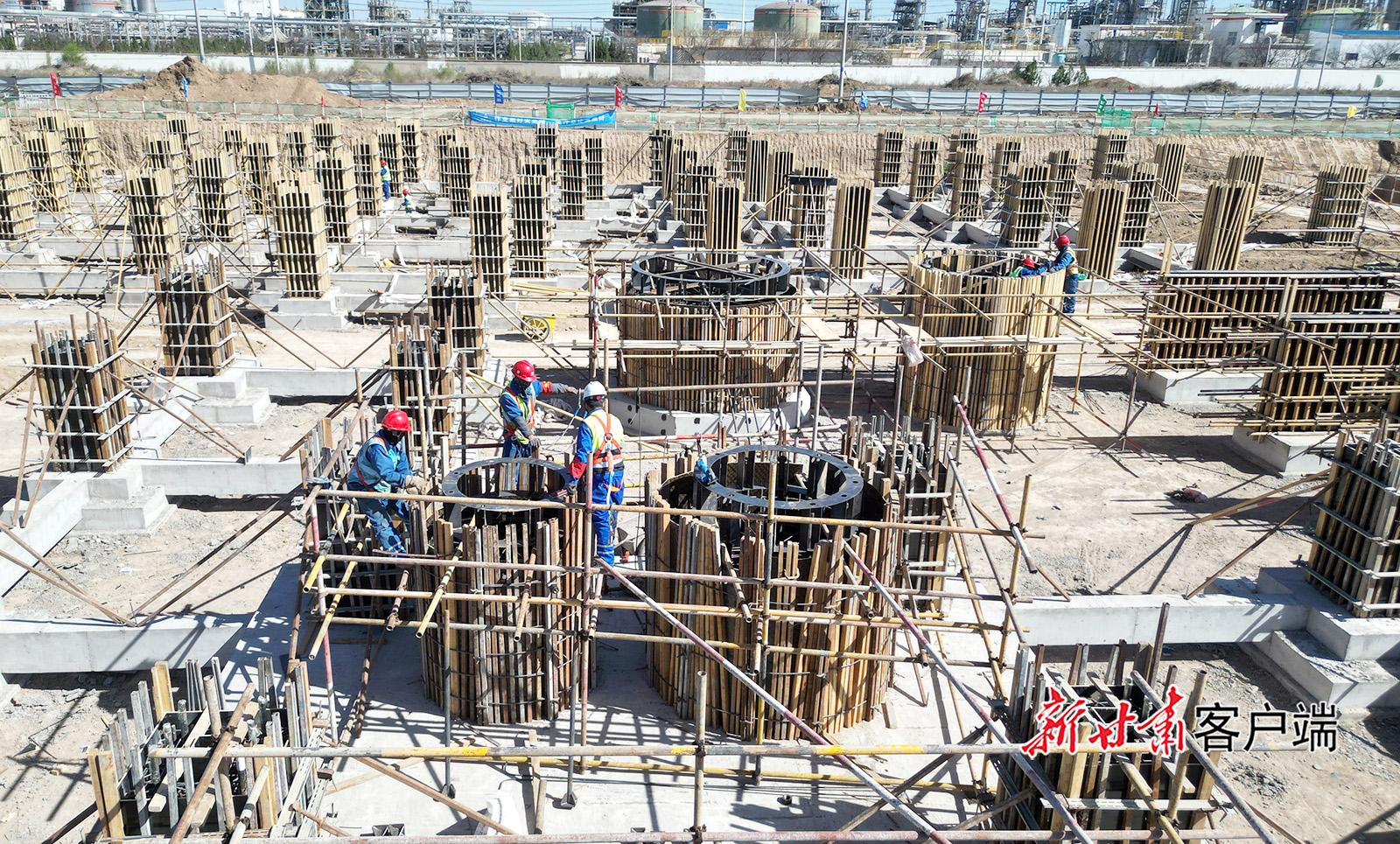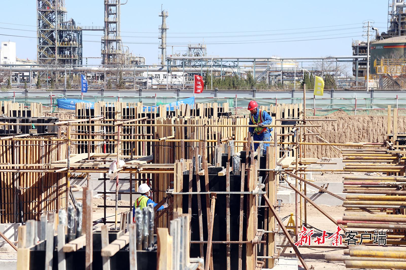 4月15日,在慶陽同欣50萬噸/年輕烴深加工項(xiàng)目建設(shè)現(xiàn)場(chǎng),施工人員緊張而有序地開展各項(xiàng)作業(yè)。